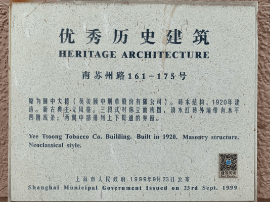 Originally erected in 1907 as godown but then totally transformed and modernized between March 1924 & August 1925. B.A.T. (英美烟公司 or Yee Tsoong Tobacco Co. in Chinese) was the largest foreign cigarette company & at the zenith of its activities in 1937, manufactured and distributed around 55 billion machine-made cigarettes to Chinese consumers. Famous brands owned or distributed included Ruby Queen, Chienmen, Hatamen, Pirate, Capstan, Kingfisher, Three Castles as well as London Straight Cut, Sweet Caporal, Pin Head, De Luxe, Old Mill, Peacock and Atlas.
