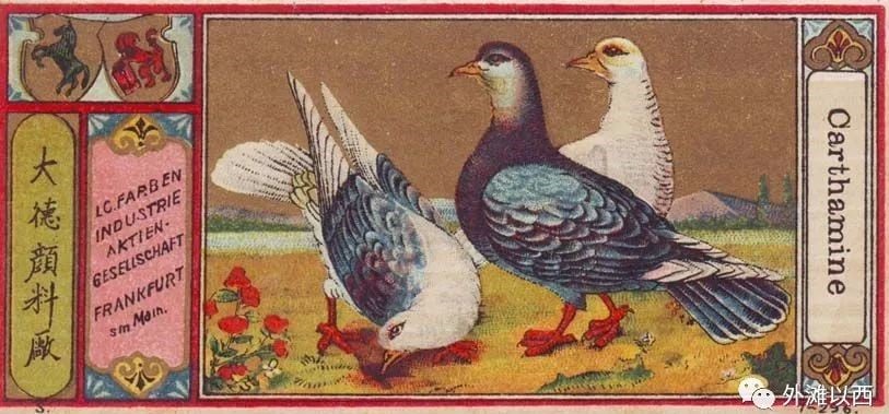 The Farbwerke vormals Meister Lucius & Brüning (later renamed to Höchst AG), was one of the three largest chemical and pharma companies in Germany. It was founded in 1863 in Höchst, near the city of Frankfurt - named after the Germanic tribe of the Franks, out of which the Frankish Empire emerged. The enterprise early-on started to export to China and its pigments & dyestuffs proved to be particularly popular there to color textiles for traditional Chinese garments. On the right side of the advertisement, we find its (poorly translated…) Chinese company name Fǎpǔwéiěrkēng (法普唯耳坑).