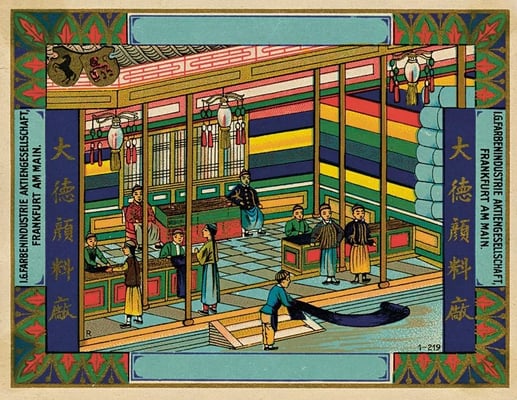 In 1916, Hoechst AG was one of the co-founders of I.G. Farben, a special interest group of Germany's chemical industry during and after WWI. In 1925, I.G. Farben became a conglomerate and with that the largest chemical and pharmaceutical company in the world, later described as “Germanys most notorious industrial concern during the Third Reich”. In China I.G. Farben marketed itself as 大德颜料厂 - "Big German Dye Factory” and enjoyed tremendous success. So much so that in 1927 it terminated the long-standing contract with “Hym-sun” and other distributors and instead founded its own Chinese trading company, Defag (德孚洋行).
