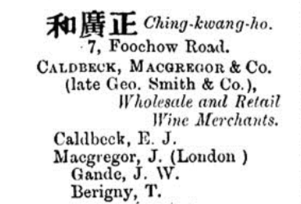 In around 1884 the three partners had a fall-out, Smith was bought out and the firm was renamed to Caldbeck, Macgregor & Co. or “Zhengguanghe” in Chinese (正广和) in 1885.