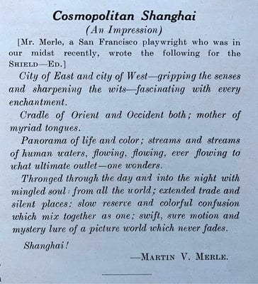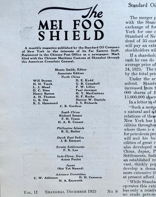 The Mei Foo Shield was the "monthly magazine published by the Standard Oil Company of New York in the interests of its Far Eastern Staff". More on SOCONY in our previous article here.