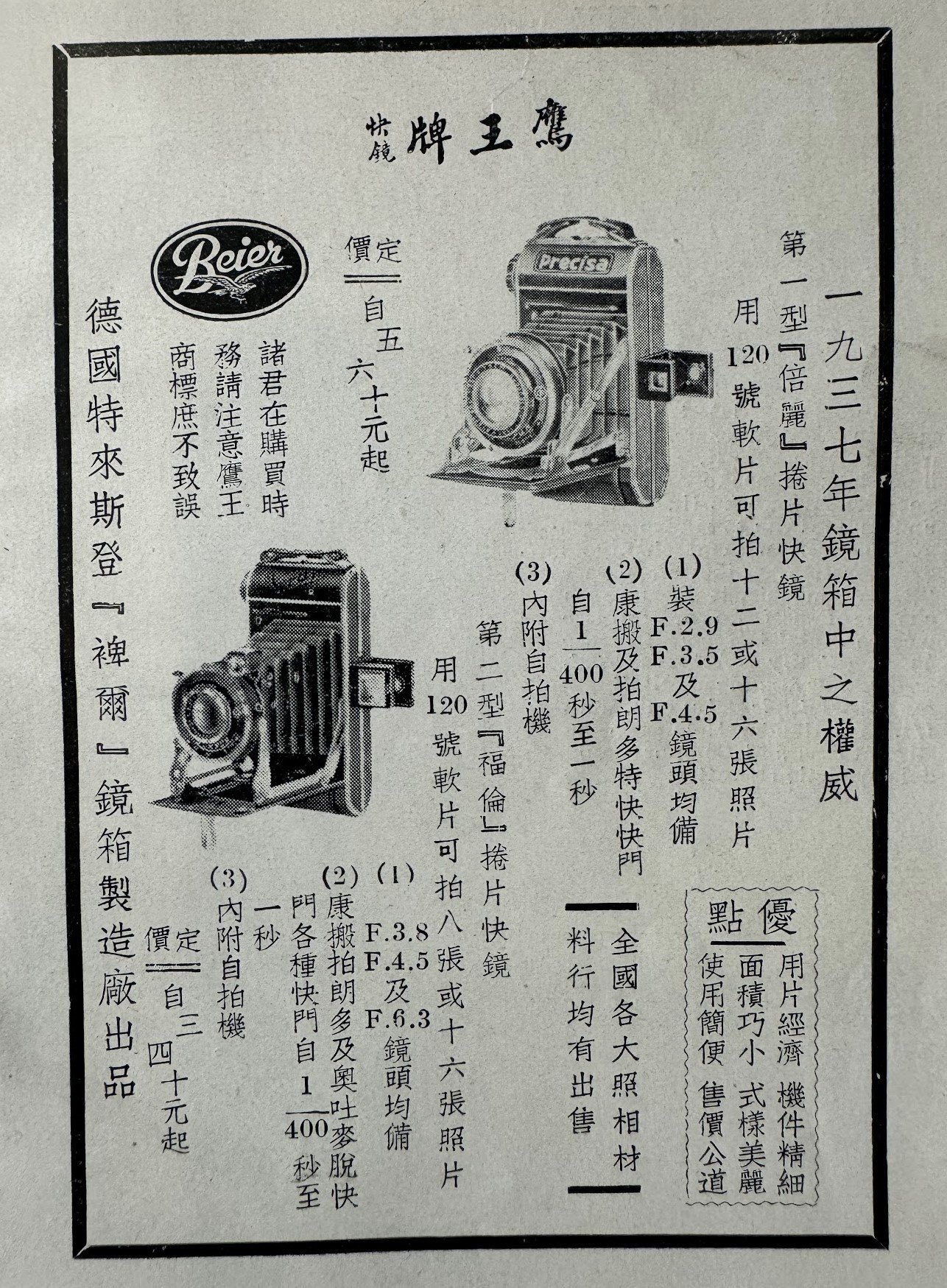 Besides Agfa, many other foreign camera and film manufacturers flocked to the Chinese market in the booming mid-1930s, such as German-made Leitz Leica, Rolleiflex, Zeiss Icon, Voigtländer, Exacta, Balda or Beier; American Univex; British Ilford; Japanese Fuji Film and the Belgian Gevaert (with which Agfa would eventually merge in 1964).
