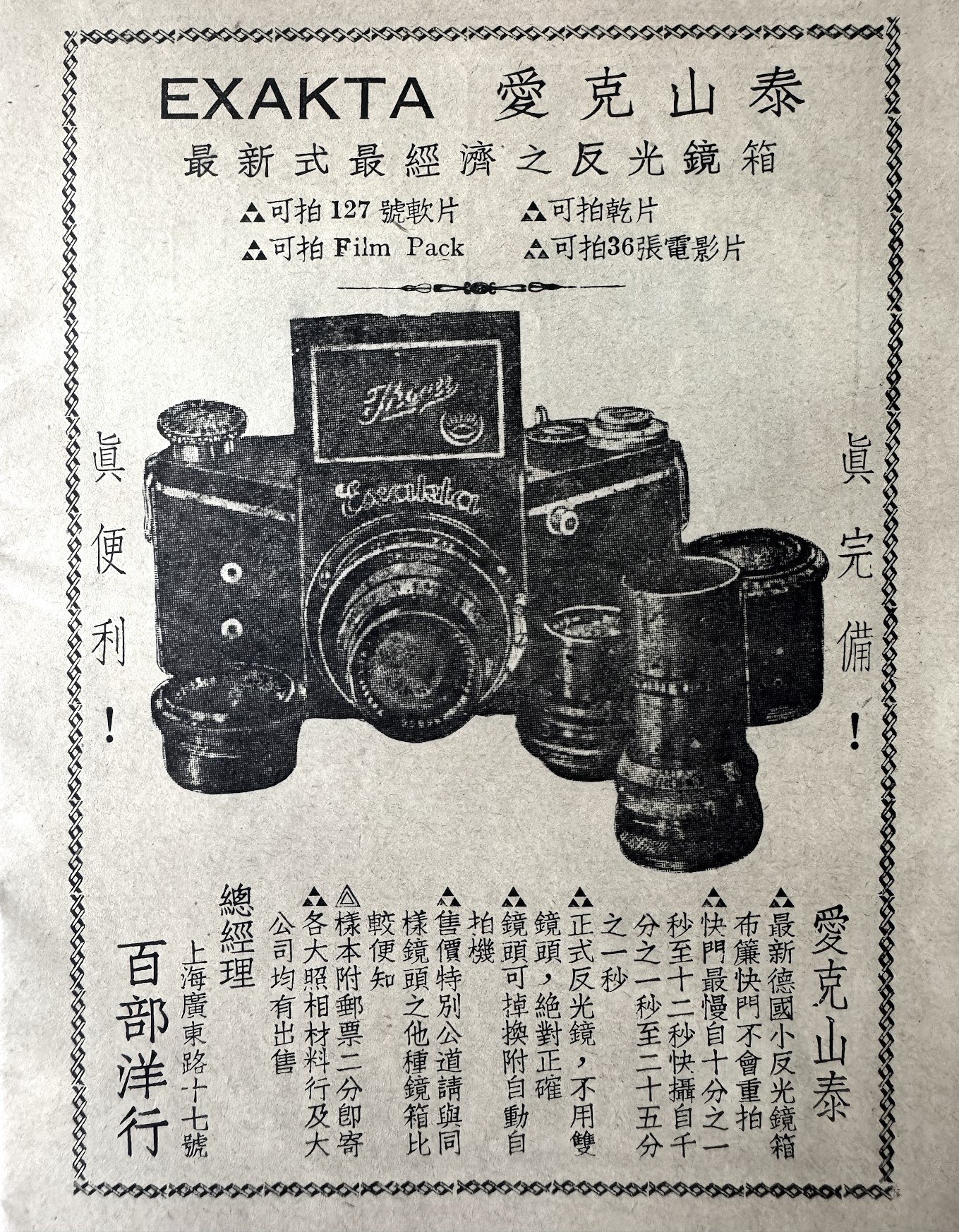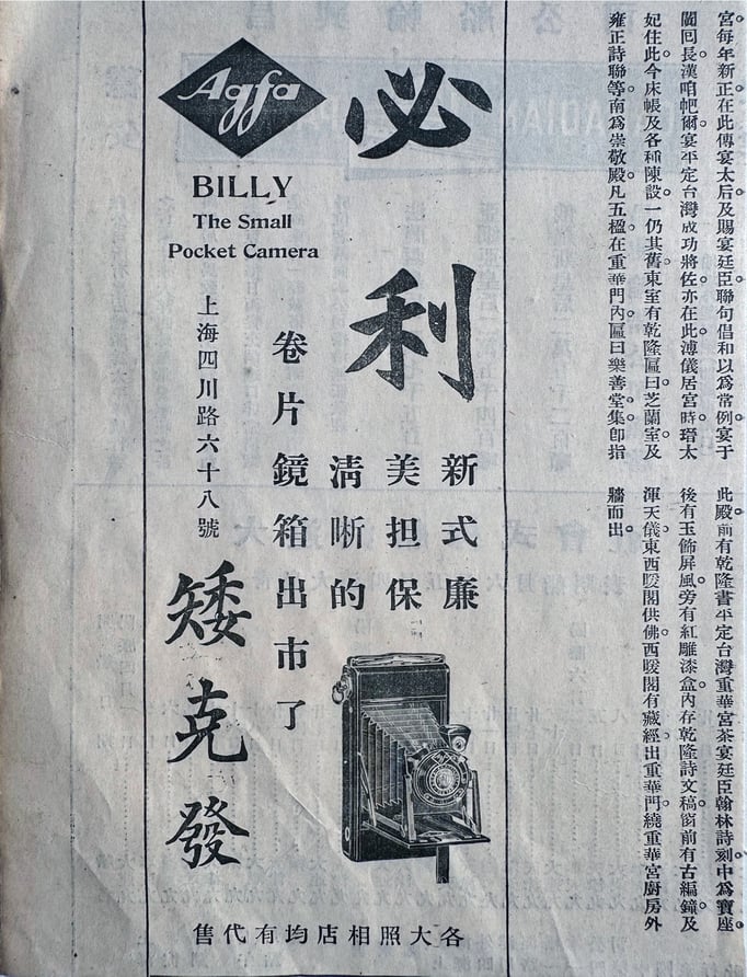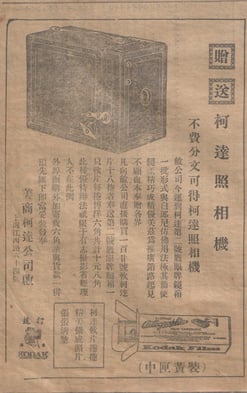 Despite the prominence of studios, the pioneering Eastman Kodak company started to advertise its consumer cameras and films in China as early as 1904. We can assume that initial sales were rather modest and primarily generated from Western expats and wealthy Chinese elites.