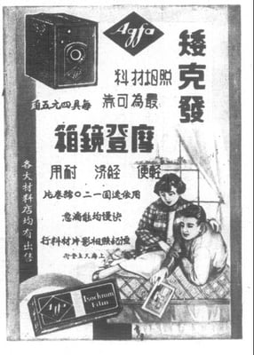 In China the Agfa Box couldn’t have been introduced at a better time: a Western-influenced Chinese middle-class developed during the 1930s, eager to spend disposable income on fashion, cosmetics and newly affordable lifestyle products such as cameras. Agfa Box cameras became mass-market products and print ads of the time promoted them as ever-ready, small and handy devices (much like our mobile phone cameras today!), to capture all scenes of modern life and document precious memories. The concept of the "family album" gained popularity.