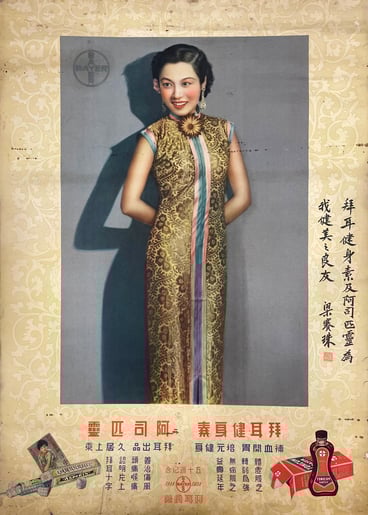 It is Liang Saizhu of the Liang sisters who were among the leading dance and movie stars in Shanghai during the late 1930s. I.G. Farben contracted all three of them in early 1937, for endorsement campaigns related to its various sub-brands.