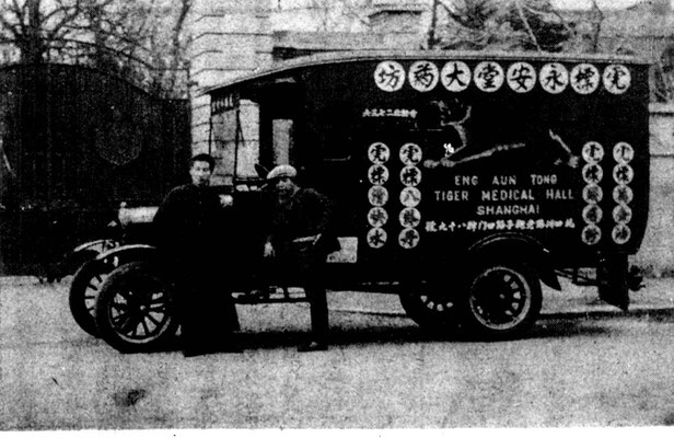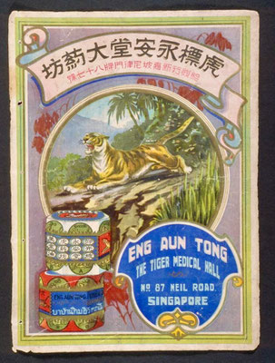 From ads in newspaper archives it seems that already in the late 1800s Eng Aun Tong had set up a small subsidiary in Guangzhou China and in 1896 a pharmacy shop in Shanghai.