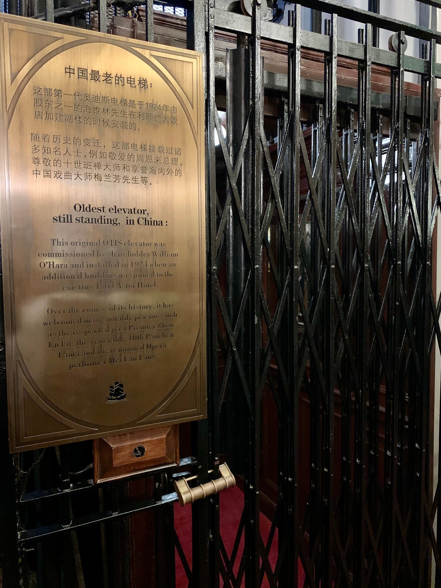 Manufactured by US company Otis and installed in 1924 at the Tientsin Astor House Hotel, when an additional building was joined to the original structure built in 1863. Otis was distributed in China by their agent American Trading Company until in 1930 the company established it's own office, located in the Shanghai Sassoon House.