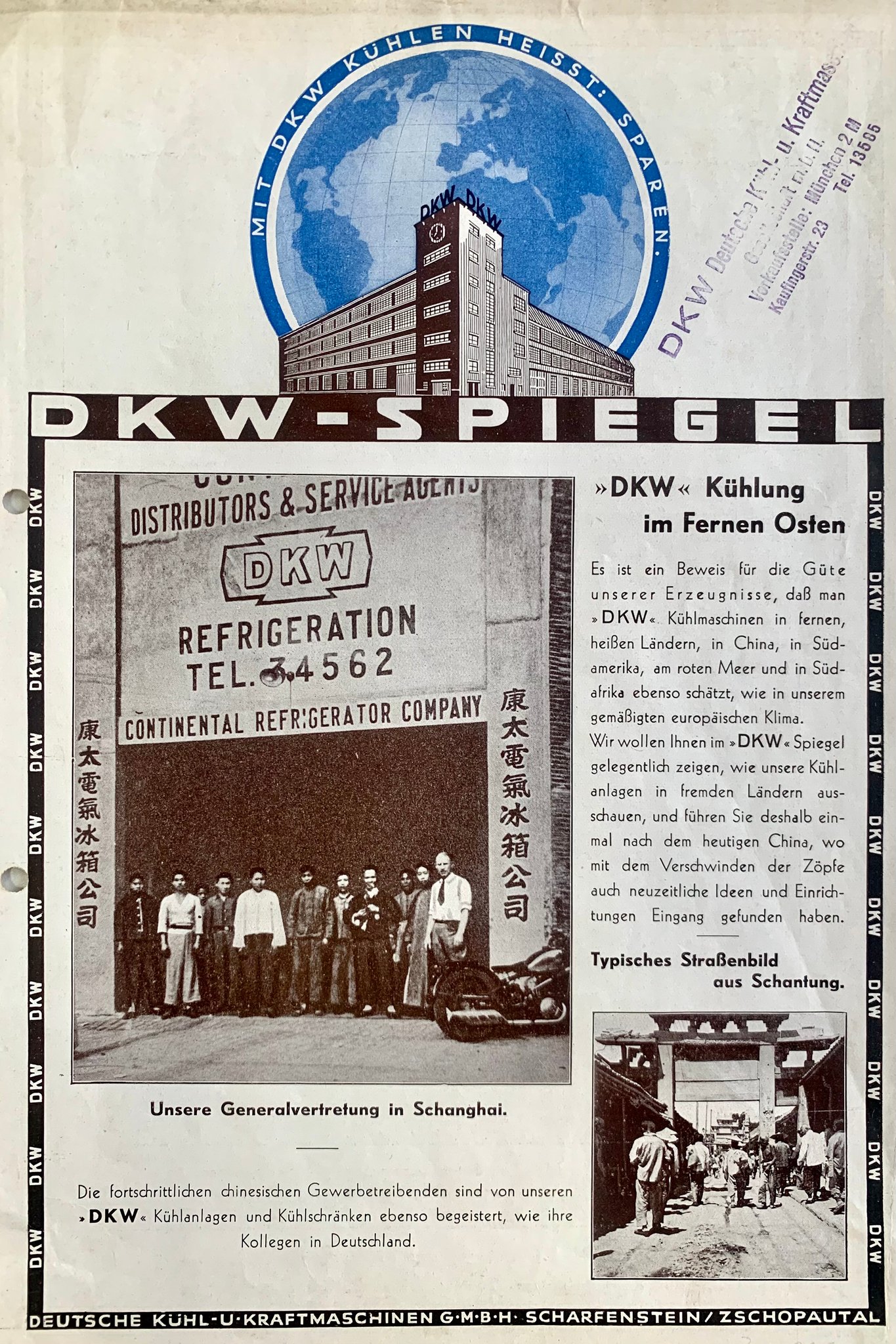 Ca. 1936 German DKW refrigerators sales brochure featuring China case studies